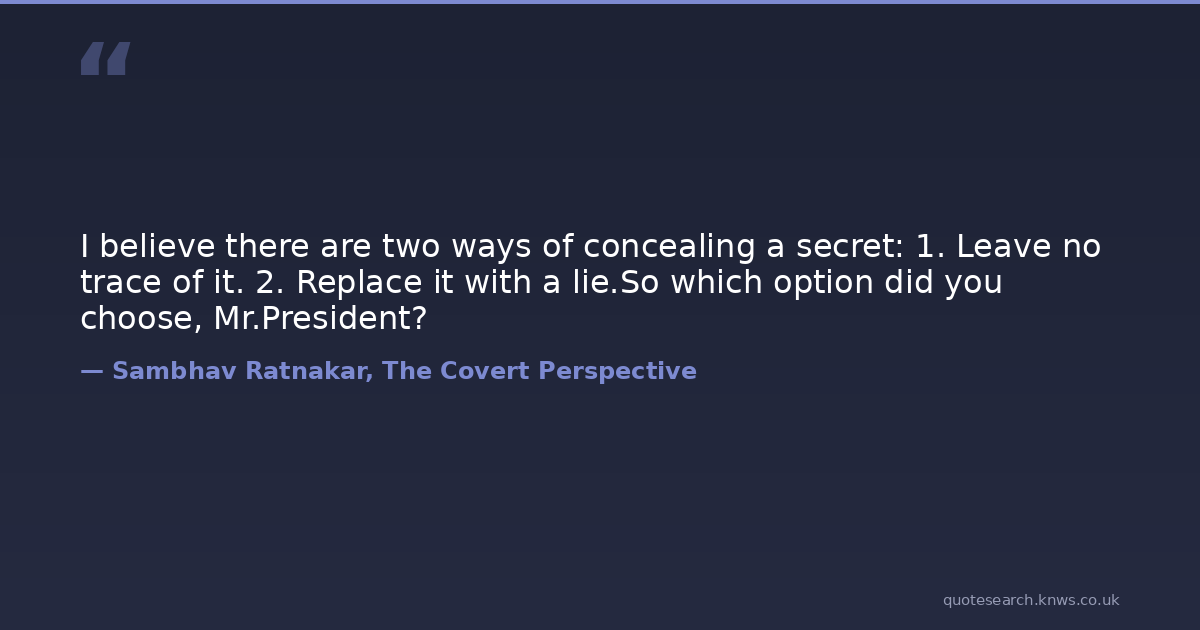I believe there are two ways of concealing a secret: 1. Leave no trace of it. 2. Replace it with a lie.So which option did you choose, Mr.President?