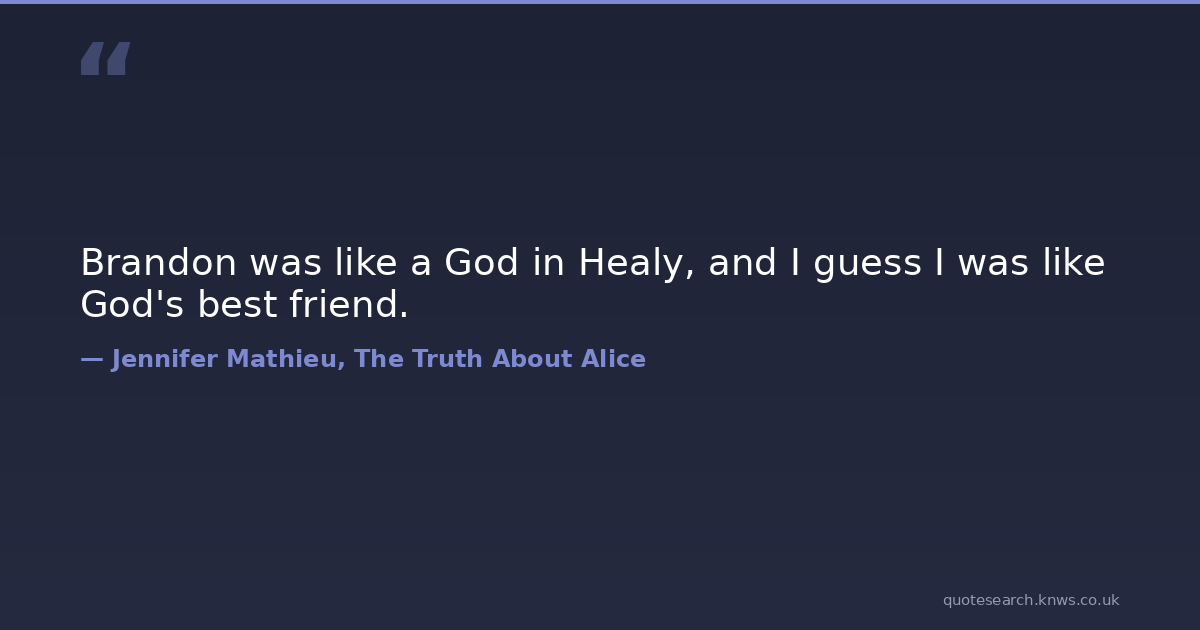 Brandon was like a God in Healy, and I guess I was like God's best friend. bullying lies rumors truth Download Image Share on X Share on Facebook Copy Link