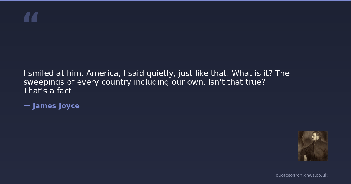 I smiled at him. America, I said quietly, just like that. What is it? The sweepings of every country including our own. Isn't that true? That's a fact.