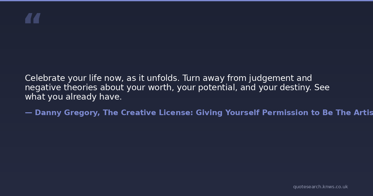 Celebrate your life now, as it unfolds. Turn away from judgement and negative theories about your worth, your potential, and your destiny. See what you already have.