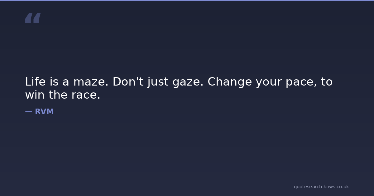 Life is a maze. Don't just gaze. Change your pace, to win the race. inspiration motivation Download Image Share on X Share on Facebook Copy Link