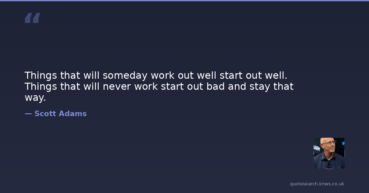 Things that will someday work out well start out well. Things that will never work start out bad and stay that way.