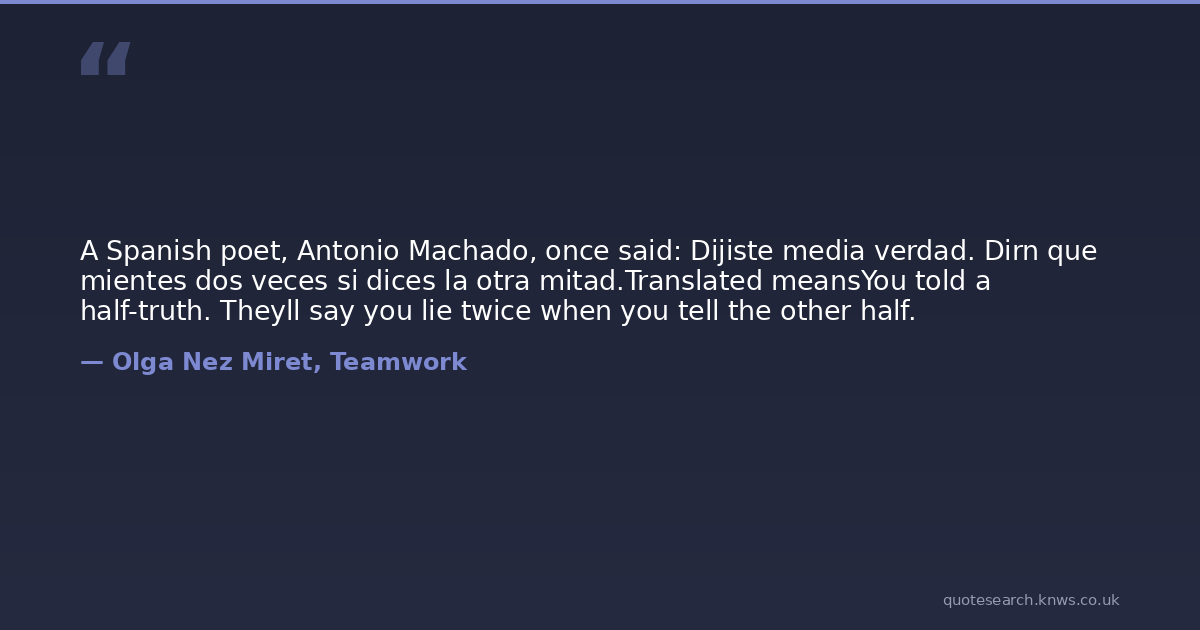 A Spanish poet, Antonio Machado, once said: Dijiste media verdad. Dirn que mientes dos veces si dices la otra mitad.Translated meansYou told a half-truth. Theyll say you lie twice when you tell the other half.