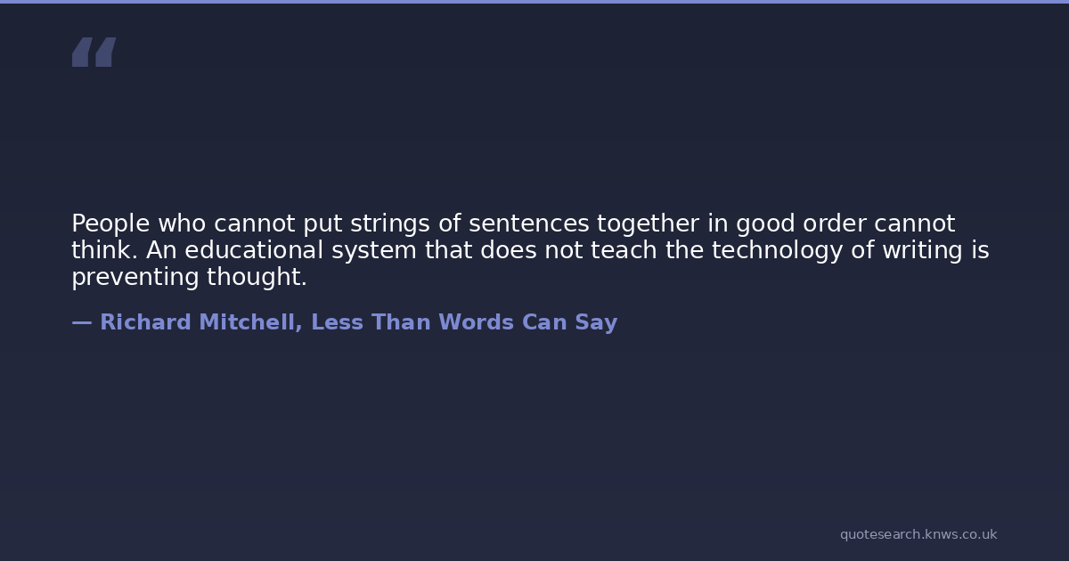 People who cannot put strings of sentences together in good order cannot think. An educational system that does not teach the technology of writing is preventing thought.
