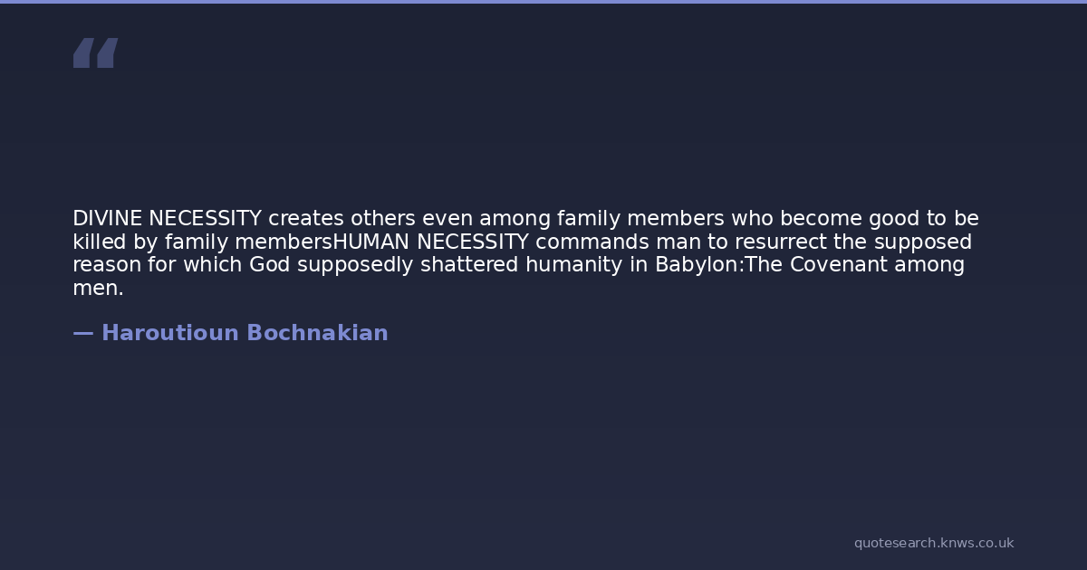 DIVINE NECESSITY creates others even among family members who become good to be killed by family membersHUMAN NECESSITY commands man to resurrect the supposed reason for which God supposedly shattered humanity in Babylon:The Covenant among men.