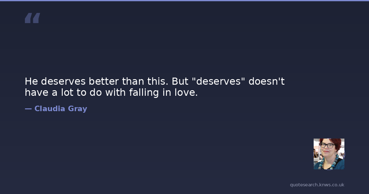 He deserves better than this. But "deserves" doesn't have a lot to do with falling in love.