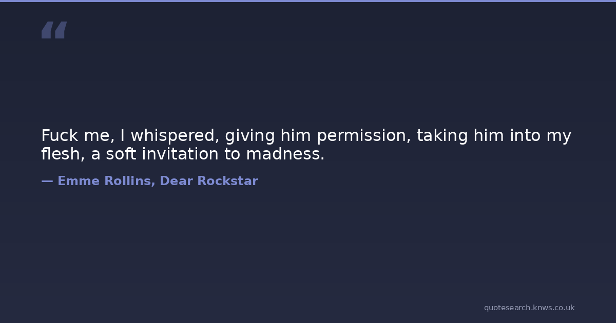 Fuck me, I whispered, giving him permission, taking him into my flesh, a soft invitation to madness.