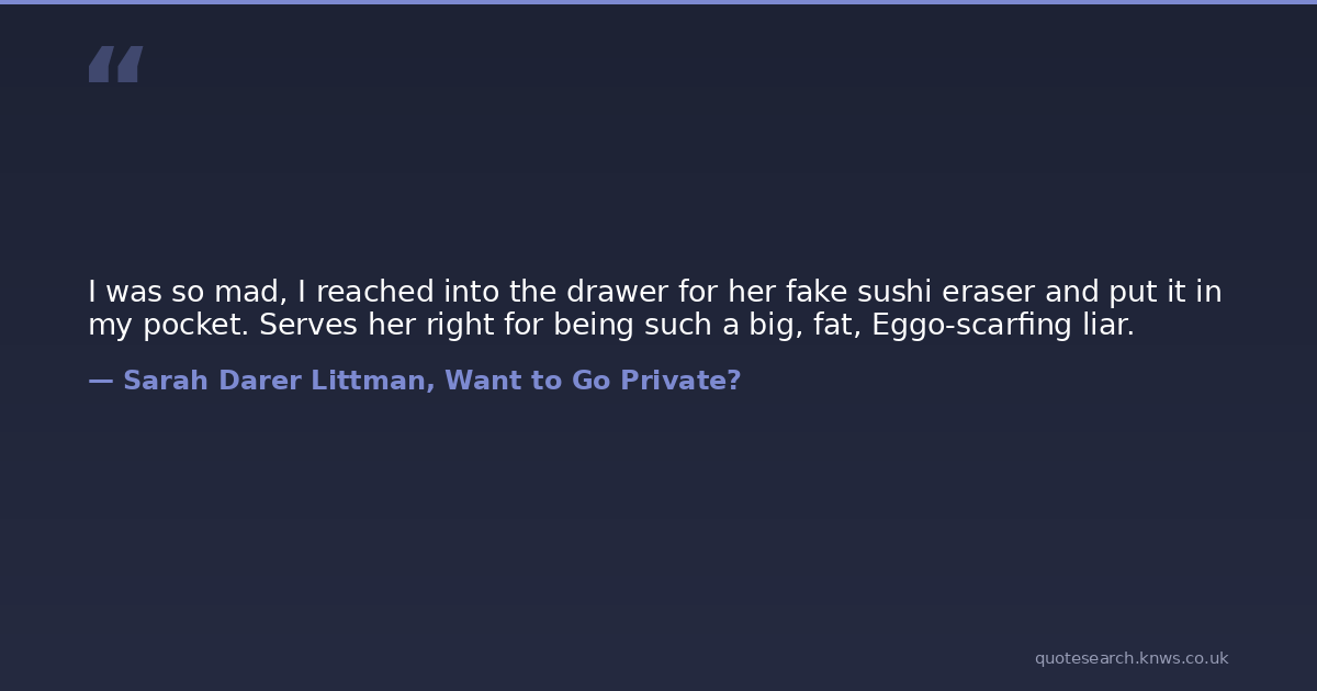 I was so mad, I reached into the drawer for her fake sushi eraser and put it in my pocket. Serves her right for being such a big, fat, Eggo-scarfing liar.