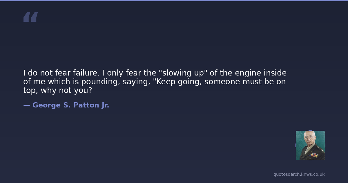 I do not fear failure. I only fear the "slowing up" of the engine inside of me which is pounding, saying, "Keep going, someone must be on top, why not you?
