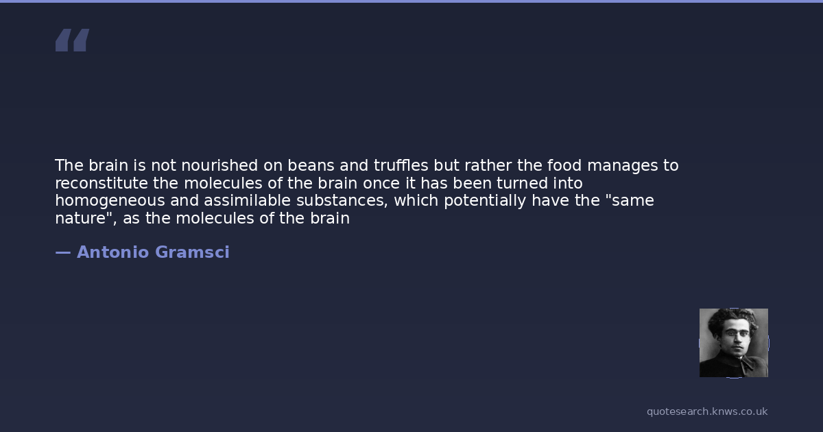The brain is not nourished on beans and truffles but rather the food manages to reconstitute the molecules of the brain once it has been turned into homogeneous and assimilable substances, which potentially have the "same nature", as the molecules of the brain