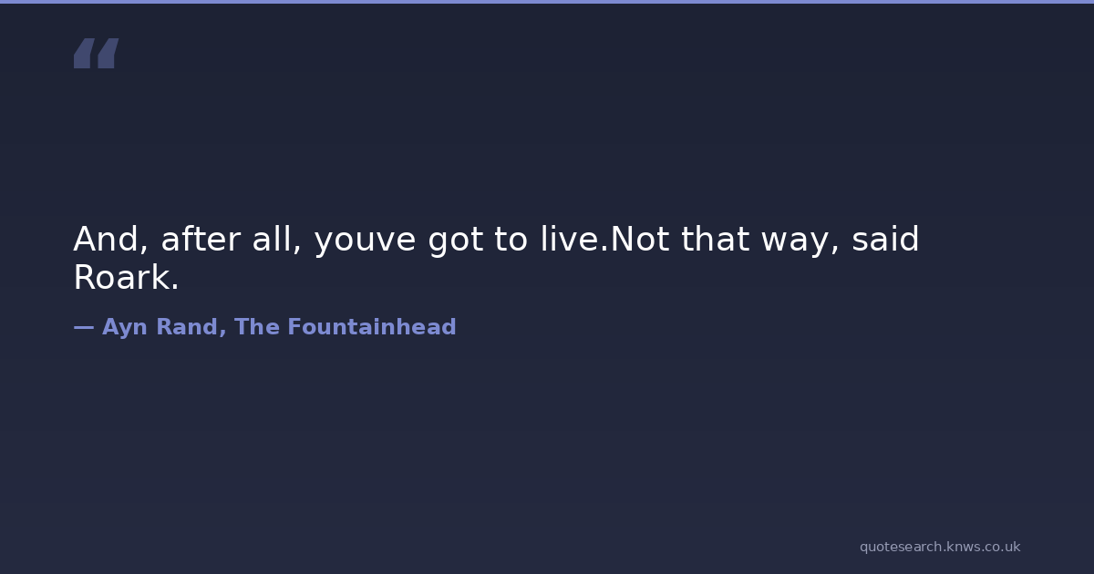 And, after all, youve got to live.Not that way, said Roark. howard-roark live the-fountainhead Download Image Share on X Share on Facebook Copy Link