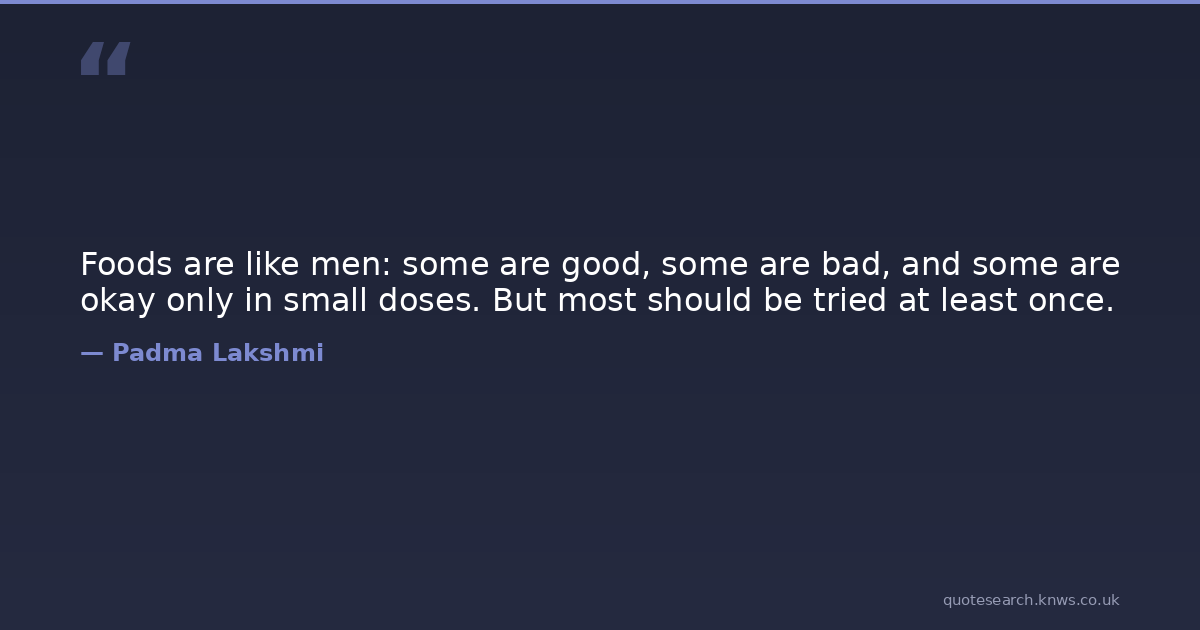 Foods are like men: some are good, some are bad, and some are okay only in small doses. But most should be tried at least once.
