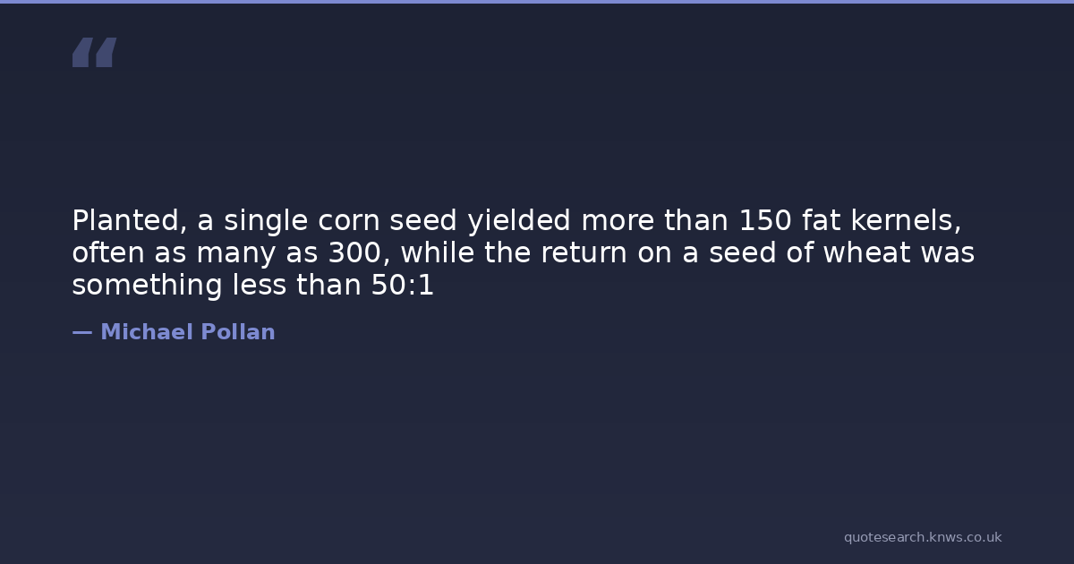 Planted, a single corn seed yielded more than 150 fat kernels, often as many as 300, while the return on a seed of wheat was something less than 50:1