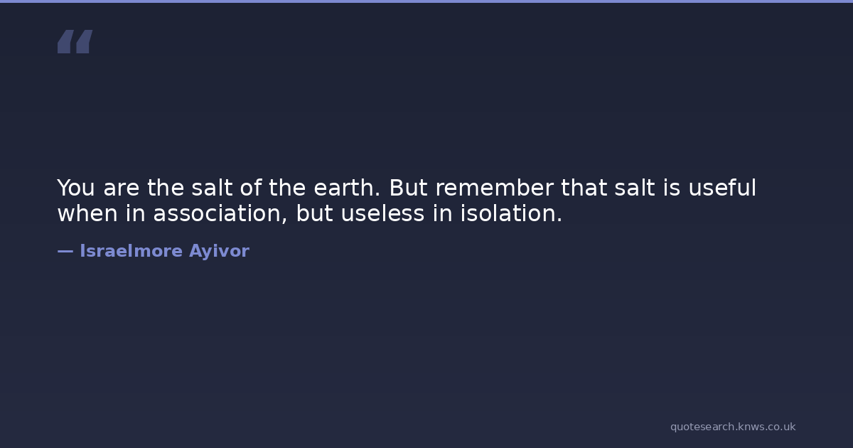 You are the salt of the earth. But remember that salt is useful when in association, but useless in isolation.