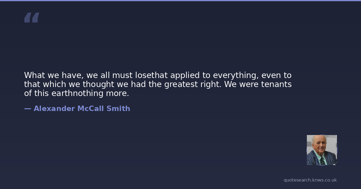 What we have, we all must losethat applied to everything, even to that which we thought we had the greatest right. We were tenants of this earthnothing more.