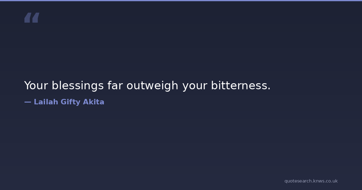 Your blessings far outweigh your bitterness. bitterness blessings christian-life distress faith forgiveness happiness hope hurt inspiration lailah-gifty-akita-affirmations life pain positive self-love spiritual uplifting Download Image Share on X Share on Facebook Copy Link