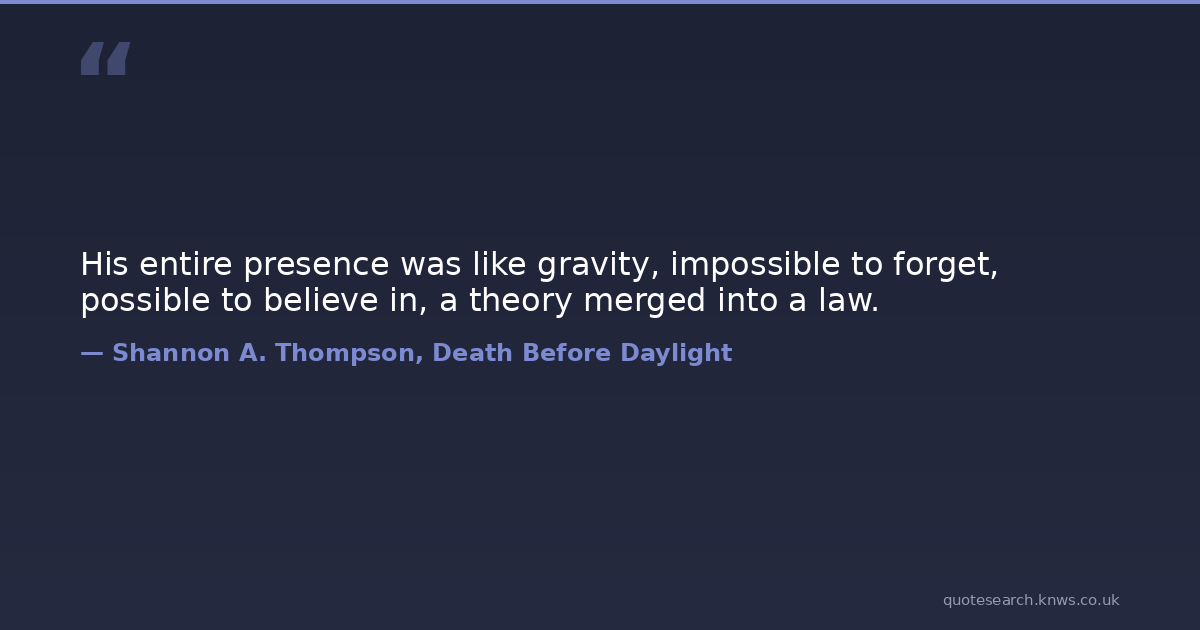 His entire presence was like gravity, impossible to forget, possible to believe in, a theory merged into a law.