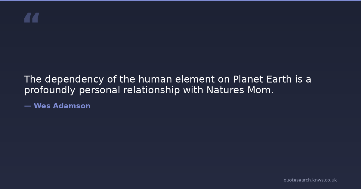 The dependency of the human element on Planet Earth is a profoundly personal relationship with Natures Mom.