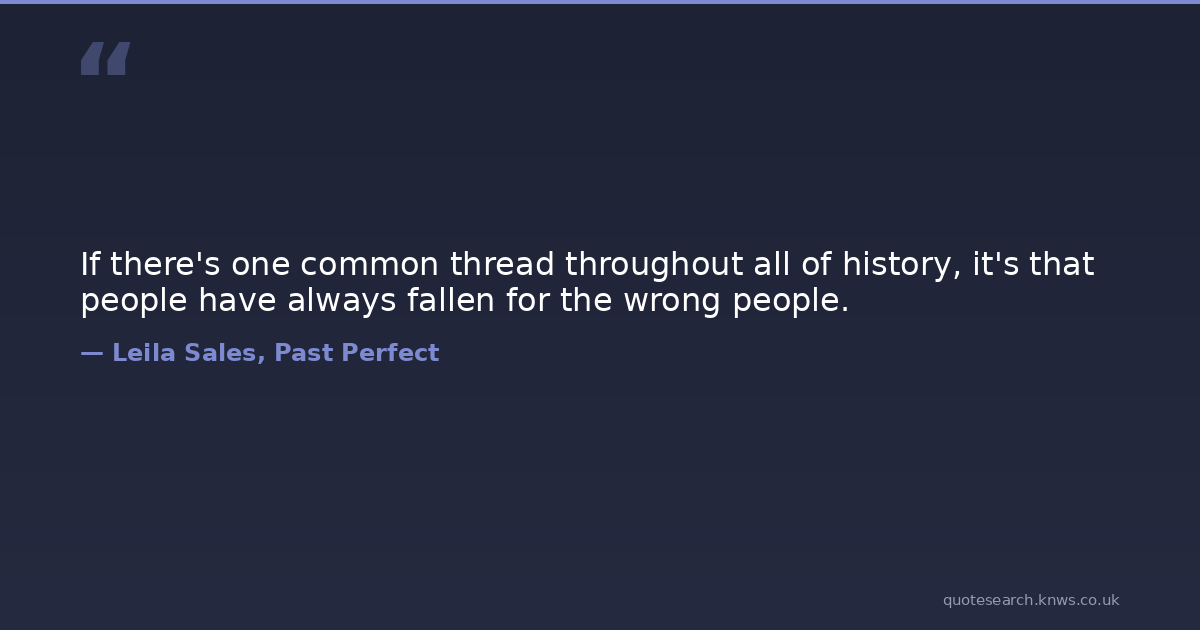If there's one common thread throughout all of history, it's that people have always fallen for the wrong people.
