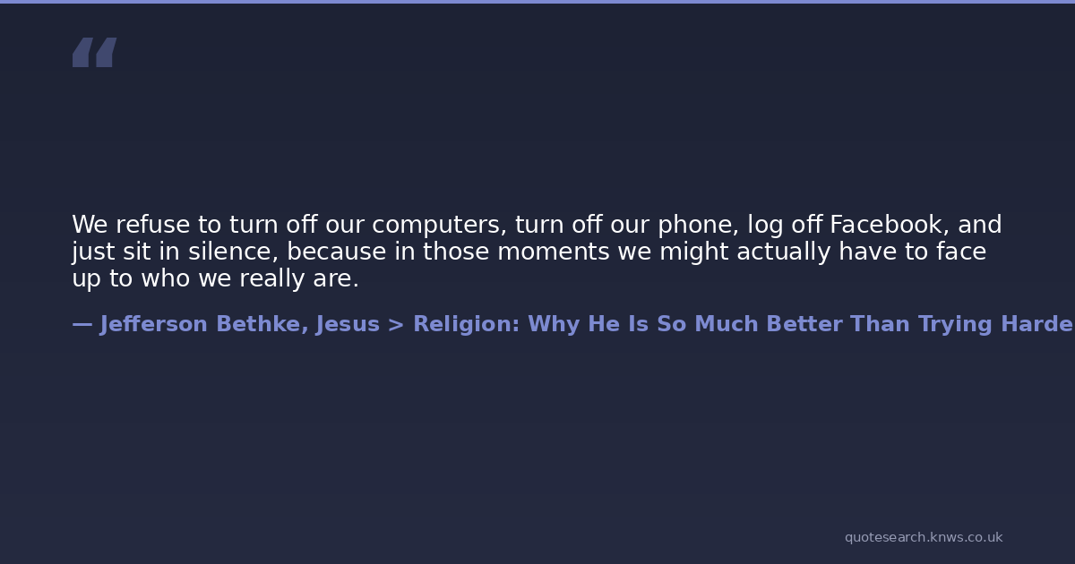 We refuse to turn off our computers, turn off our phone, log off Facebook, and just sit in silence, because in those moments we might actually have to face up to who we really are.