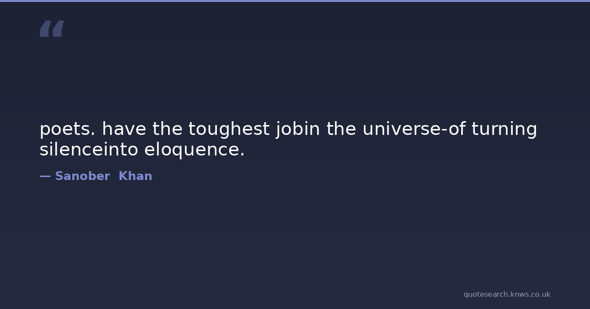 poets. have the toughest jobin the universe-of turning silenceinto eloquence. eloquence poetry-quotes poets poets-and-poetry silence universe Download Image Share on X Share on Facebook Copy Link