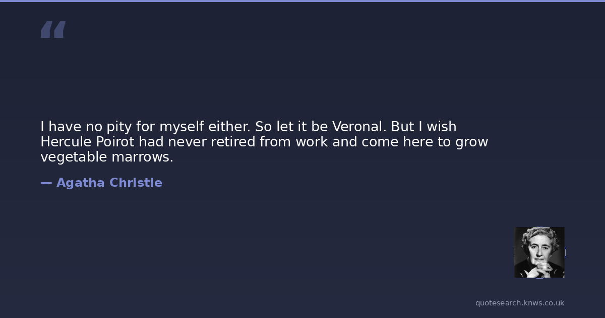I have no pity for myself either. So let it be Veronal. But I wish Hercule Poirot had never retired from work and come here to grow vegetable marrows.