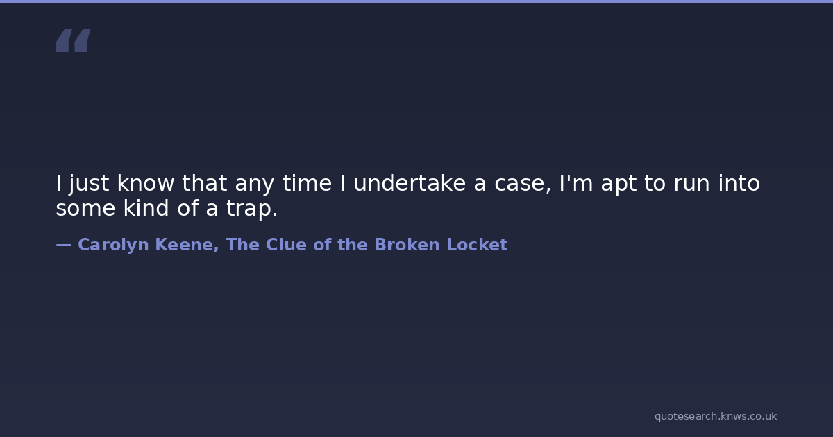 I just know that any time I undertake a case, I'm apt to run into some kind of a trap. mystery Download Image Share on X Share on Facebook Copy Link