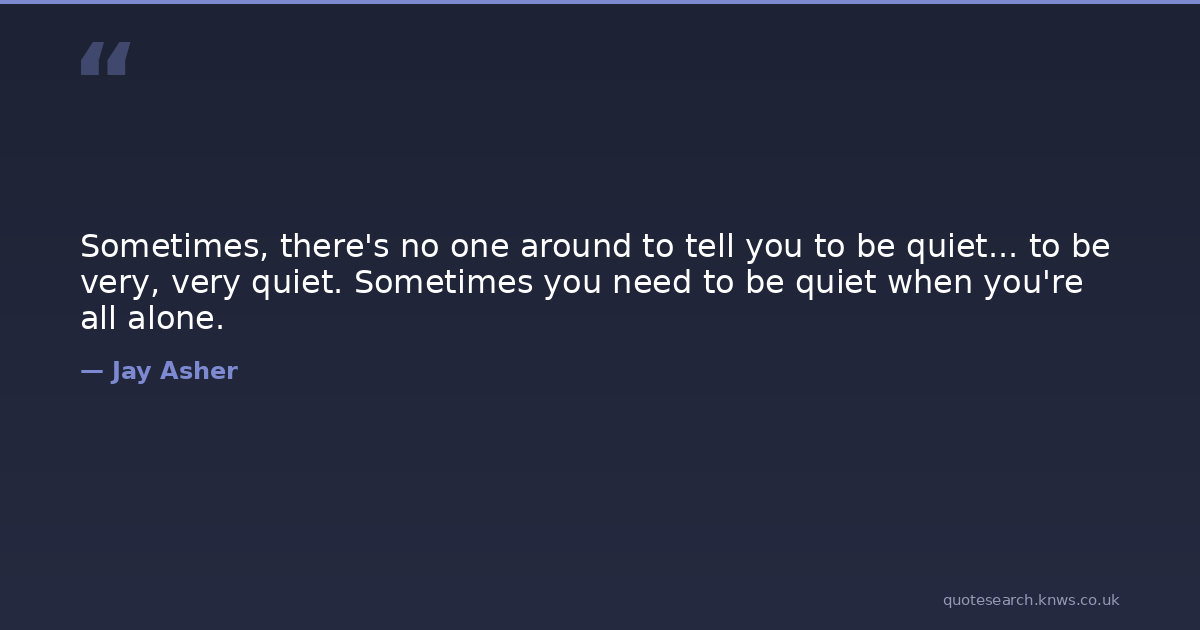 Sometimes, there's no one around to tell you to be quiet... to be very, very quiet. Sometimes you need to be quiet when you're all alone.