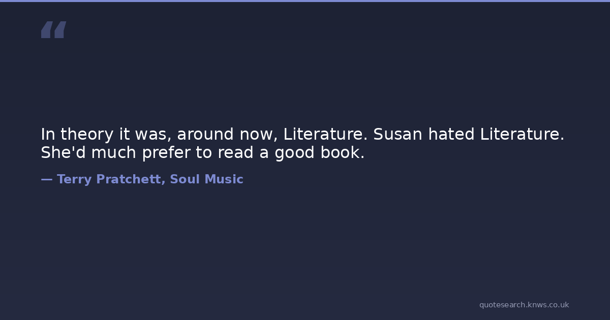 In theory it was, around now, Literature. Susan hated Literature. She'd much prefer to read a good book.