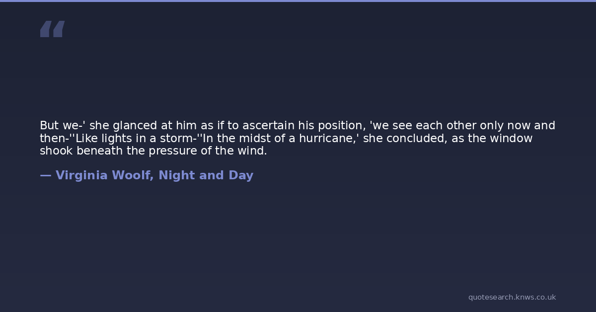 But we-' she glanced at him as if to ascertain his position, 'we see each other only now and then-''Like lights in a storm-''In the midst of a hurricane,' she concluded, as the window shook beneath the pressure of the wind.