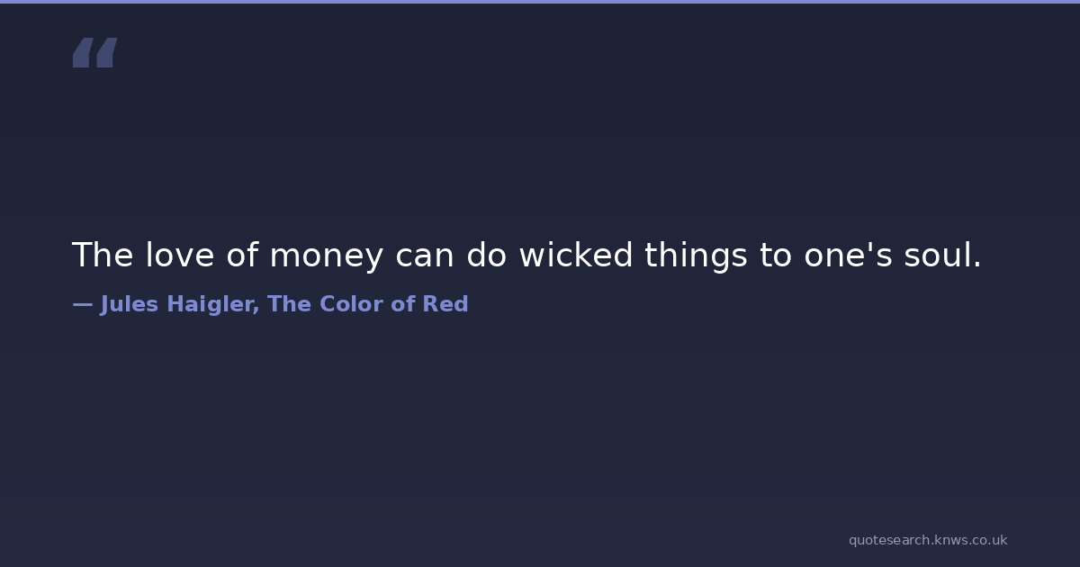 The love of money can do wicked things to one's soul. mystery mystery-novels mystery-series mystery-suspense Download Image Share on X Share on Facebook Copy Link