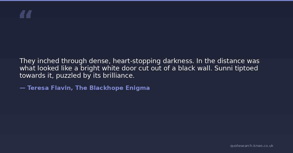 They inched through dense, heart-stopping darkness. In the distance was what looked like a bright white door cut out of a black wall. Sunni tiptoed towards it, puzzled by its brilliance.