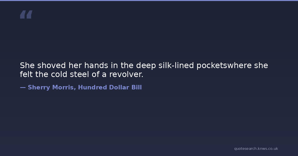 She shoved her hands in the deep silk-lined pocketswhere she felt the cold steel of a revolver. mystery suspense thriller Download Image Share on X Share on Facebook Copy Link