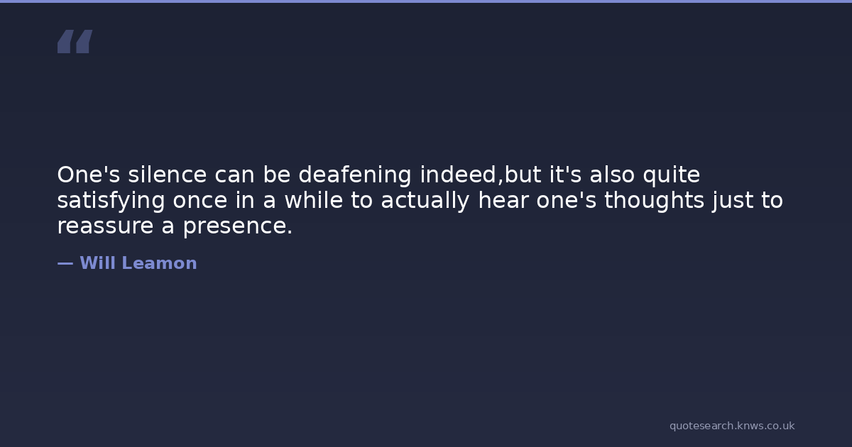 One's silence can be deafening indeed,but it's also quite satisfying once in a while to actually hear one's thoughts just to reassure a presence.