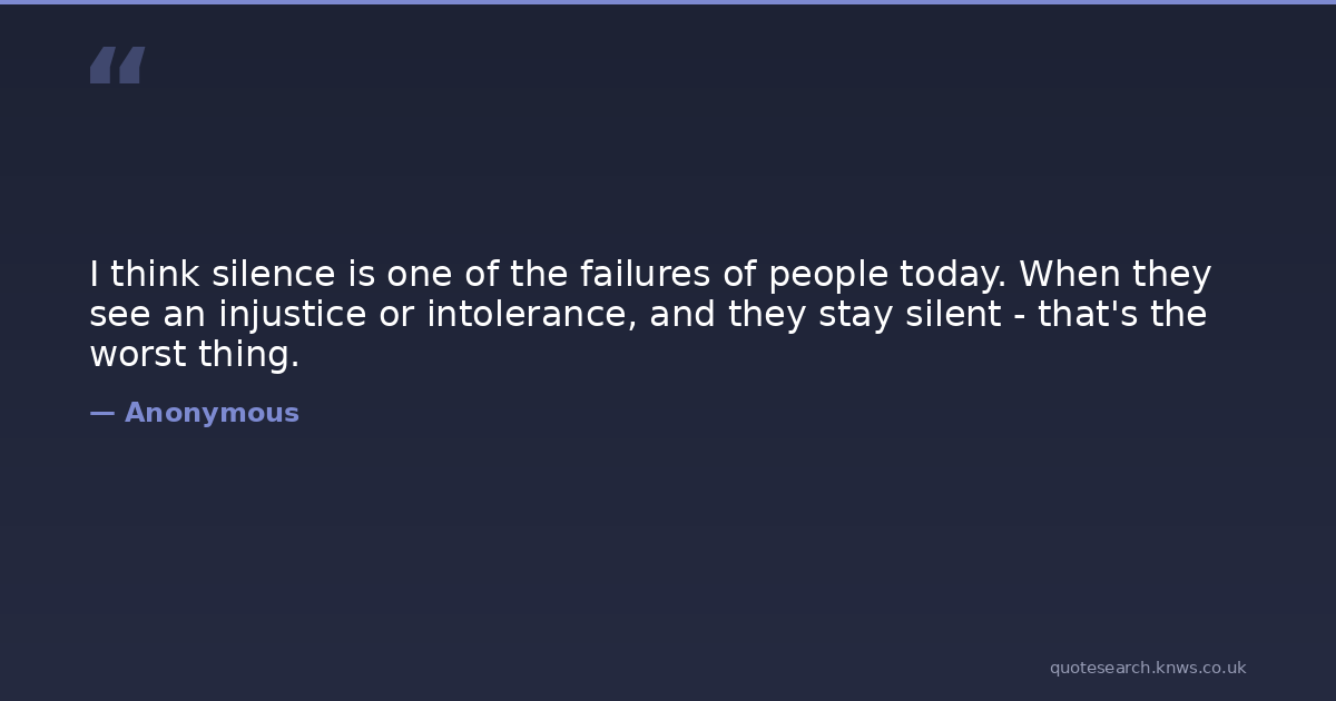I think silence is one of the failures of people today. When they see an injustice or intolerance, and they stay silent - that's the worst thing.