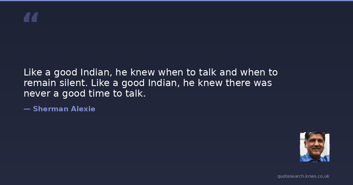Like a good Indian, he knew when to talk and when to remain silent. Like a good Indian, he knew there was never a good time to talk.
