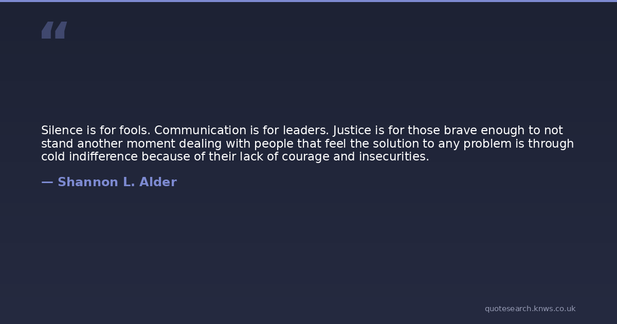 Silence is for fools. Communication is for leaders. Justice is for those brave enough to not stand another moment dealing with people that feel the solution to any problem is through cold indifference because of their lack of courage and insecurities.