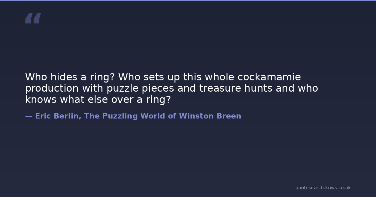 Who hides a ring? Who sets up this whole cockamamie production with puzzle pieces and treasure hunts and who knows what else over a ring?