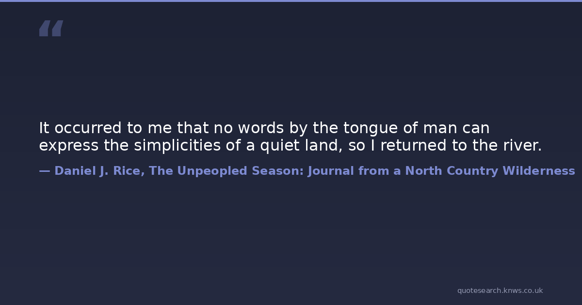 It occurred to me that no words by the tongue of man can express the simplicities of a quiet land, so I returned to the river.