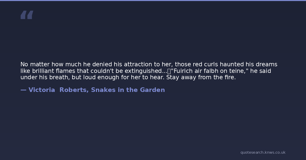 No matter how much he denied his attraction to her, those red curls haunted his dreams like brilliant flames that couldn't be extinguished... "Fuirich air falbh on teine," he said under his breath, but loud enough for her to hear. Stay away from the fire.