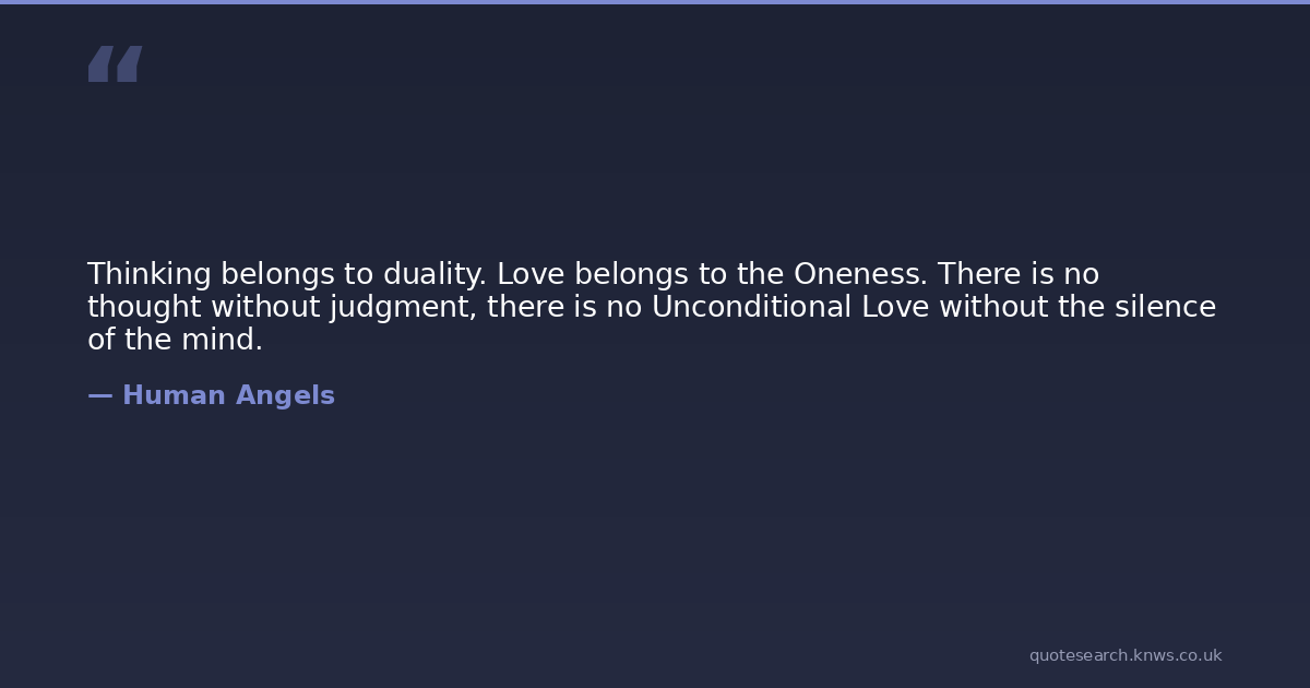 Thinking belongs to duality. Love belongs to the Oneness. There is no thought without judgment, there is no Unconditional Love without the silence of the mind.