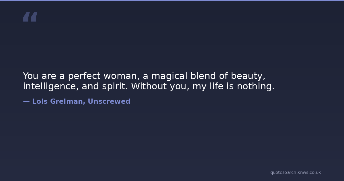 You are a perfect woman, a magical blend of beauty, intelligence, and spirit. Without you, my life is nothing.