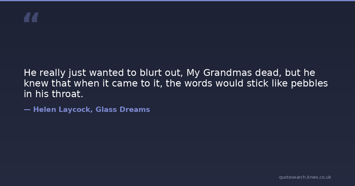 He really just wanted to blurt out, My Grandmas dead, but he knew that when it came to it, the words would stick like pebbles in his throat.