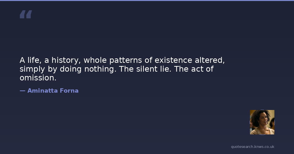 A life, a history, whole patterns of existence altered, simply by doing nothing. The silent lie. The act of omission.