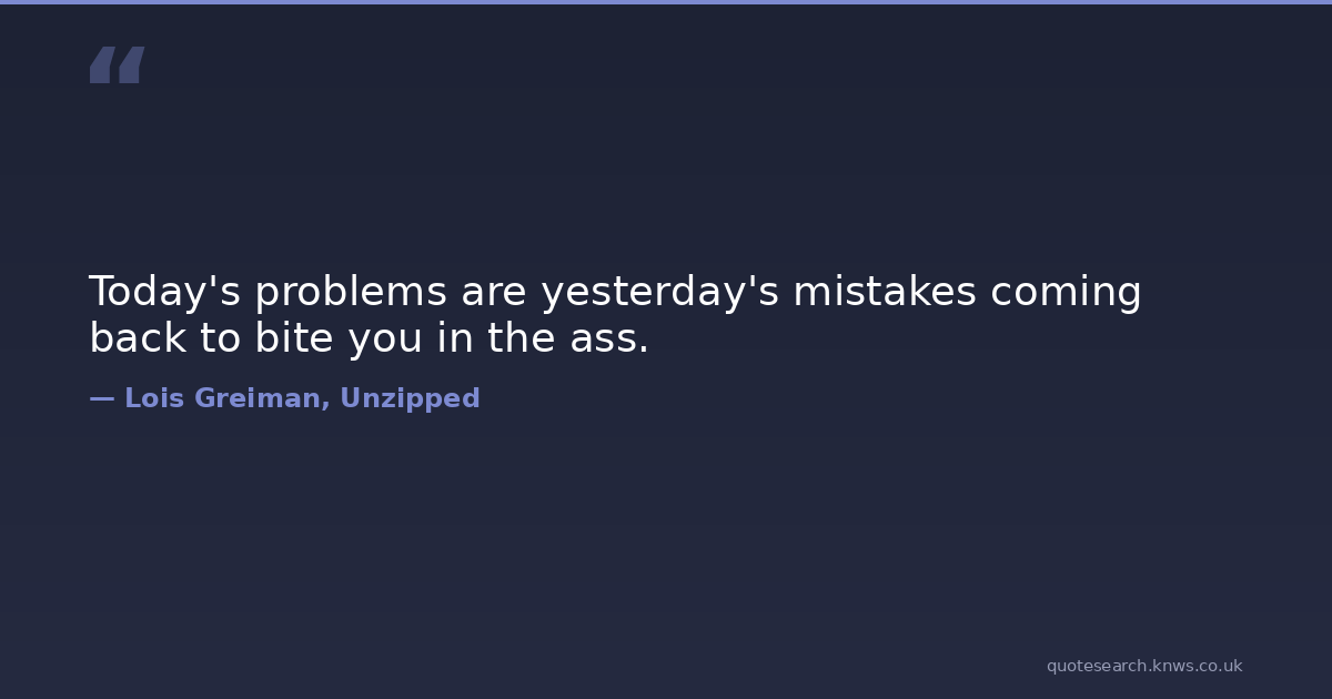 Today's problems are yesterday's mistakes coming back to bite you in the ass.