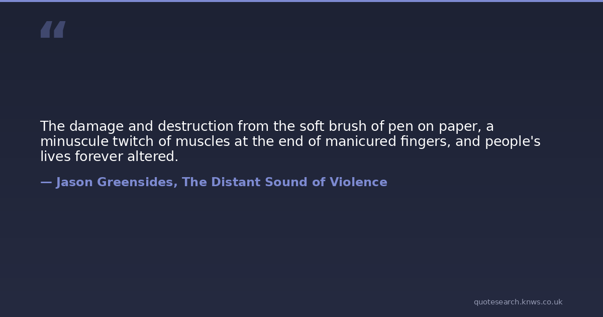 The damage and destruction from the soft brush of pen on paper, a minuscule twitch of muscles at the end of manicured fingers, and people's lives forever altered.