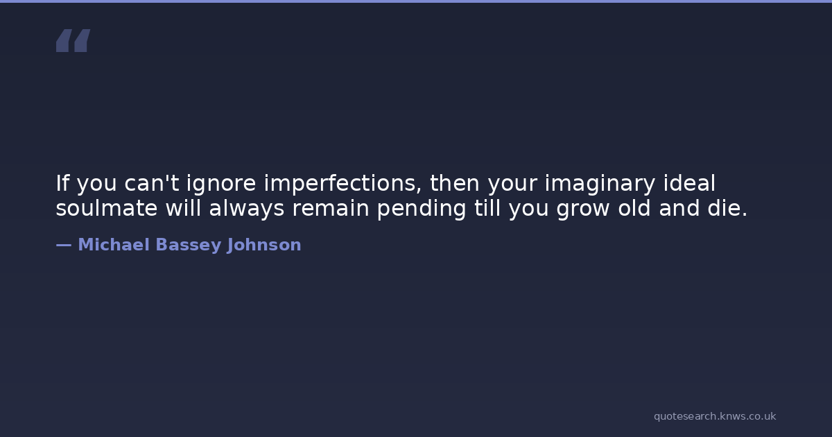 If you can't ignore imperfections, then your imaginary ideal soulmate will always remain pending till you grow old and die.
