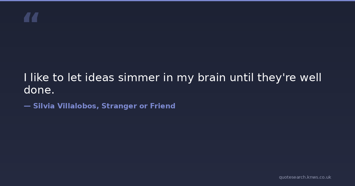 I like to let ideas simmer in my brain until they're well done. ideas mystery writing Download Image Share on X Share on Facebook Copy Link