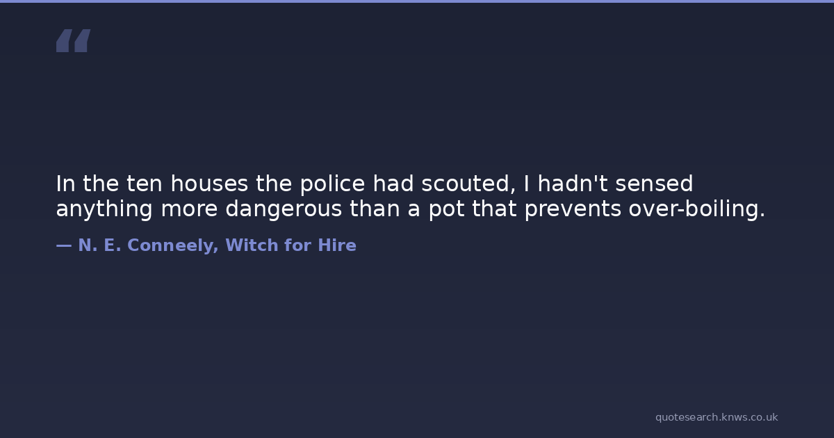 In the ten houses the police had scouted, I hadn't sensed anything more dangerous than a pot that prevents over-boiling.