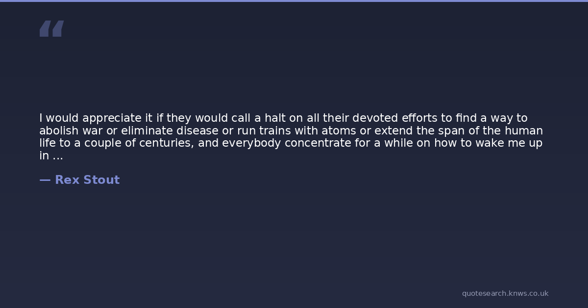 I would appreciate it if they would call a halt on all their devoted efforts to find a way to abolish war or eliminate disease or run trains with atoms or extend the span of the human life to a couple of centuries, and everybody concentrate for a while on how to wake me up in the morning without my resenting it.